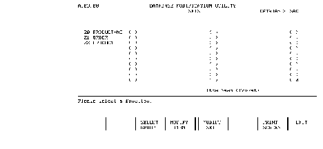 Press SELECT PRINTER to change the default device used for dbmods print operations. An error indicates if the selected device is not on line or not ready.