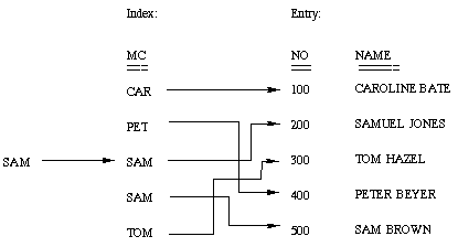 - Access via just part of the search-item is possible (e.g., all customers whose names begin with SAM).