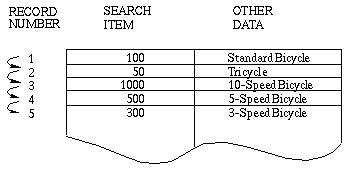 This example also shows two deleted (blank) records. When a record is deleted from a data file, the space taken by that record still remains in the file. When a new record is added, it takes an available space left by a deleted record. If there are no deleted (blank) records, the new record is added to the end of the file.