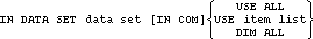 If the IN COM option is selected, an IN DATA SET statement executed in the main program remains active across all subprograms and functions. IN COM may be used with any of the previously described IN DATA SET options. However, all variables referenced must be explicitly dimensioned in common. This option can only appear in the main program, and not in subprograms or functions.